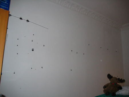 A white wall waiting to be redecorated, that is. And the (non-)surprising fact that doing something real world like distributing a handful of drawing pins on a large wall so they form a reasonably precise grid turns out to be a bit more effort than it sounds.